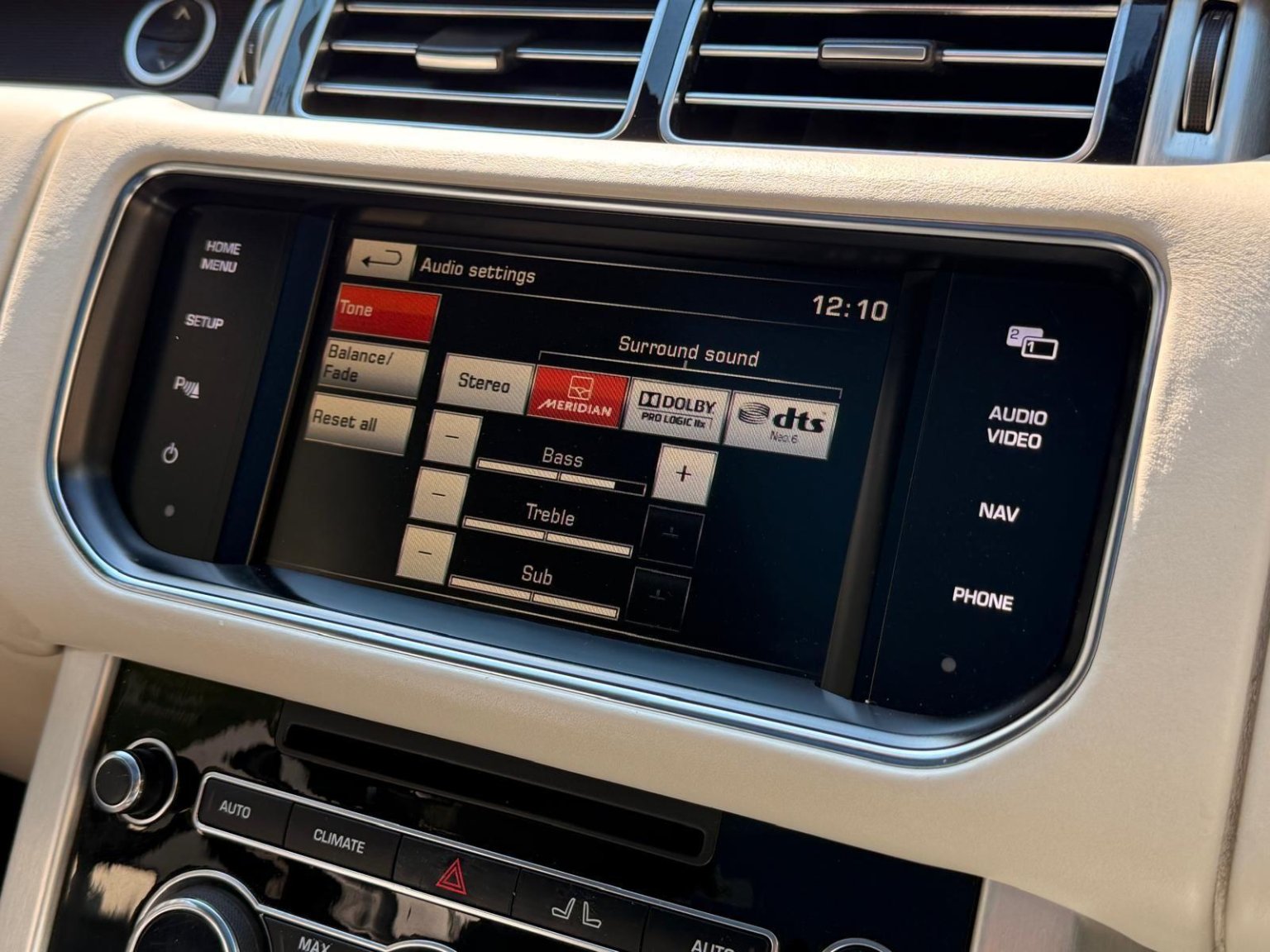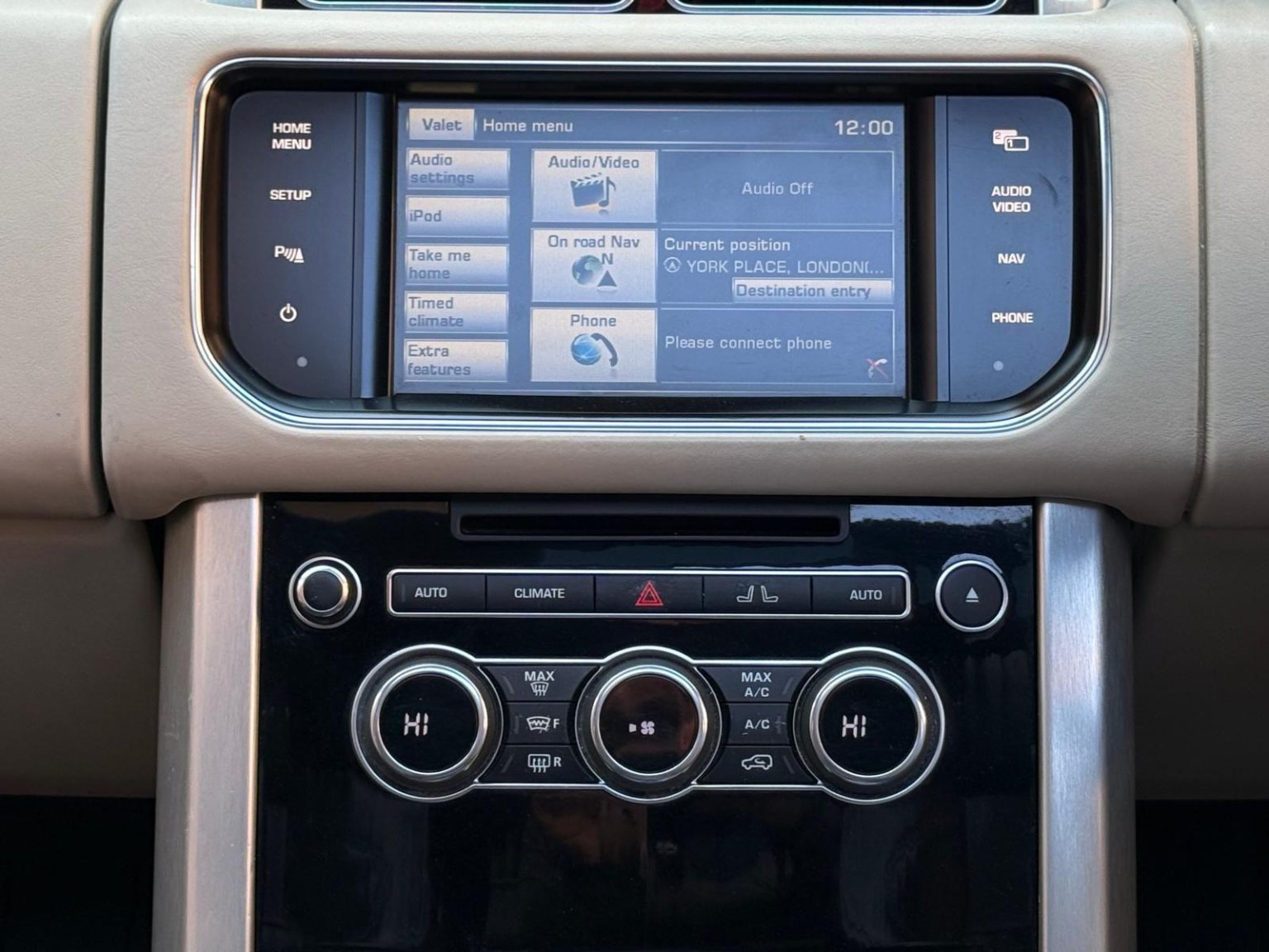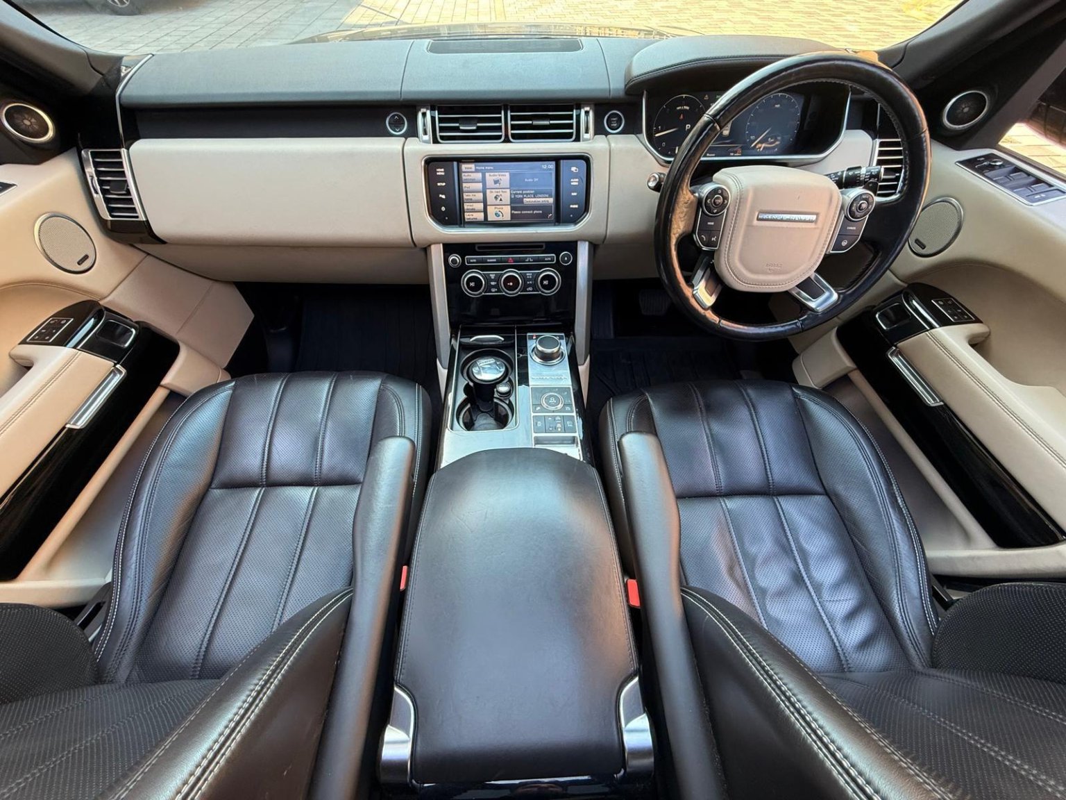 Push Button Start, Queue Assist, RSC - Roll Stability Control, Rain Sensing Windscreen Wipers, Reactive grounding response, Rear Bench Seat with load through facility and Rear Manual Recline, Rear Centre Armrest - Including Rear Storage Compartment, Rear bench seat with load through facility, Rear wash/wipe, Roof - Body Coloured, SDV8 Vogue SE Badge, Seat Map Pockets, Secure glove box stowage, Side Loadspace Nets, Side Repeater Indicators in Mirror, Single point entry - customer configurable, Soft Door Close, Spare Wheel - Temporary Reduced Section, Steering Wheel - Heated, Steering column - electric adjustment for height and reach with entry and exit tilt away, Subwoofer, TMC - Dynamic route guidance, TSA - Trailer Stability Assist, TV - Digital, Terrain Response 2 Auto, Tool Kit, Touch Screen with Dual View technology, Twin Blade Sunvisor, Twin Tailpipes, USB Connectivity, User selectable screen savers, Veneer - Figured Macassar, Voice Control - Say what you see - Intuitive Voice Control, WhiteFire wirless headphones, 18 way Drivers / 18 way Passenger Front Seats, 19 Speakers, 20 inch Brake Calipers, 20in 5 Split Spoke Alloy Wheels Style 2, 3 Zone Climate Control, 825W Meridian Surround Sound System, 8in Touch Screen, ABS - Anti Lock Braking System, ASL - Active Speed limiter, Acoustic laminated windscreen, Adaptive Cruise Control with Queue Assist with Intelligent Emergency Braking, Adaptive Dynamics, Adaptive Xenon Headlights, Adjustable Seat Bolsters, Airbags - Full Size Driver, Airbags - Full Size Passenger, Airbags - front seat pelvic and thorax, Alarm System - Perimetric, Aluminium tread plates with Range Rover lettering, Armrests - Front - Driver and Passenger, Audio - CD Radio, Automatic Headlight Levelling, Automatic Headlights, Automatic Headlights with High Beam Assist, Auxiliary Power Sockets 12v - Front, Battery back up sounder upgrade - perimetric/volumetric alarm, Bluetooth Audio Streaming, Bluetooth Phone Connection, Body Colour Door Mirrors, CBC - Cornering Brake Control, Carpet Mat Set - Front and Rear, Centre High Mounted Stop Light, Climate Front Seats with Heated Rear Seats, Cushion Extention, Customer configurable autolock - doors lock on driveaway, DSC - Dynamic Stability Control, Daytime Running Lights, Digital Audio Broadcast Radio - DAB, Door Mirrors - Heated - Adjustable - Powerfold with Approach Lights and Memory, Drive select rotary shifter, Driver and Passenger Memory, Dynamic Response, EBA - Emergency Brake Assist, EBD - Electronic Brake-Force Distribution, EPAS - Electronic Power Assisted Steering, ESP - Electronic stability program, ETC - Electronic Traction Control, Electric Parking Brake, Electric Windows - Front and Rear, Electrical Towing Preparation, Electronic Air Suspension - Variable Ride Height, Engine immobilisation, Exterior Mirrors - Auto Dimming, Exterior Mirrors - Driver selectable auto reverse dipping, Exterior Standard Bumper Pack, Follow me home lighting, Front and Rear Recovery Hooks, Front and rear cupholders, Front and rear grab handles, Front centre console - cooler compartment, Front centre console compartment, Front power headrest up/down, Full TFT - LCD Instrument Cluster, HDC - Hill Descent Control, Hard disk navigation system, Hazard Warning Lights Under Heavy Braking, Headlights - Power Wash, Headlining - Morziner-Cirrus-Ivory, Headrest - Front and Rear 4-Way Tilt, Heated Front Seats, Heated Rear Window, Heated off screen wiper park position - manual lift away from screen, Heated windscreen - Laminated Hydrophobic Front Door and Laminated Rear Door and Qtr light, High Beam Assist, HomeLink - Garage Door Opener, ISOFIX Child Seat Anchor Points, Illumination - Load Compartment Light, Intelligent Emergency Braking, Interior Mood Lighting, Keyless Entry, LED Rear Lights, Leather Steering Wheel, Less Rear Seat Power Lumbar, Load Space Cover, Loadspace anchor points, Locking Fuel Flap, Locking Wheel Nuts, Metal roof, Multi-Function Steering Wheel, Non Smokers Pack, Off Road Navigation, Parking Aid - Rear View Camera, Parking aid - front park distance control, Parking aid - rear park distance control, Passenger Seat Away, Power Upper and Lower Trunk-Tailgate, Power operated child locks